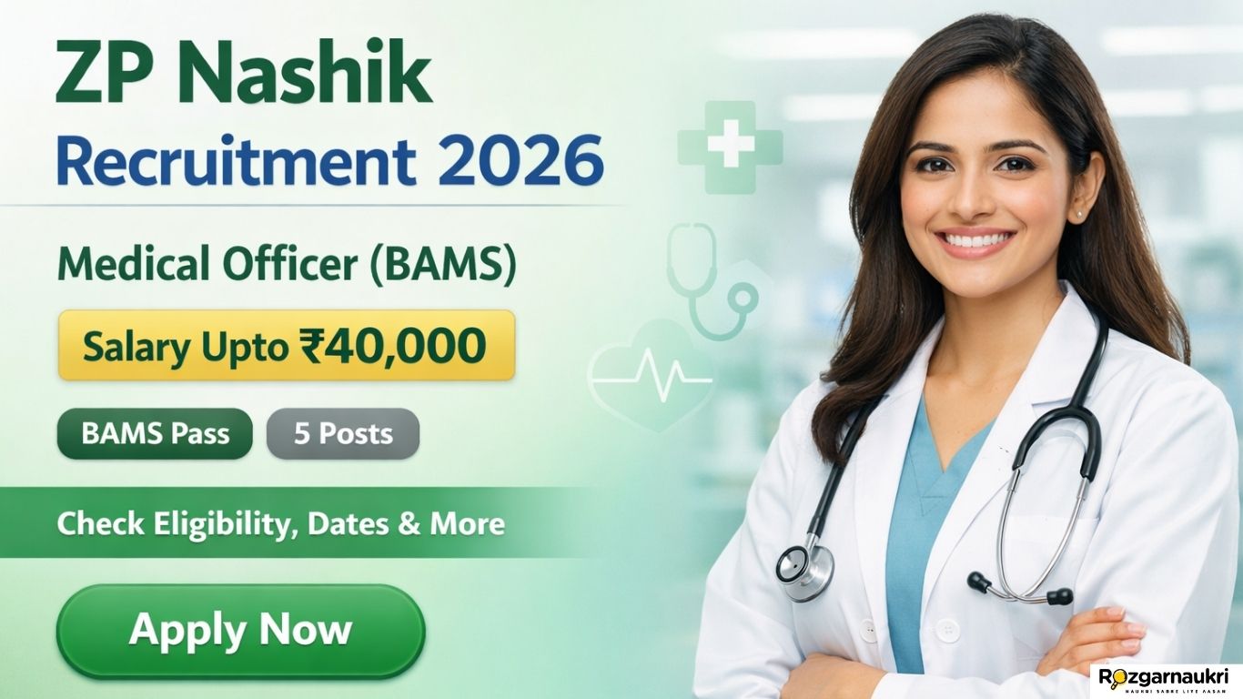 आरोग्य विभाग, जिला परिषद नाशिक द्वारा ZP Nashik Recruitment 2026 के तहत मानसेवी वैद्यकीय अधिकारी (Medical Officer – BAMS) पदों पर भर्ती का notification जारी किया गया है। यह भर्ती contract basis पर की जा रही है।